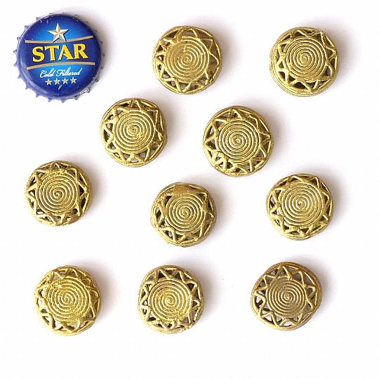 As a visual clue to the size and scale of our beads, we use a Star beer cap in our bead images. Why Star? Because it's the major beer of Ghana where most of our beads are made. Also, on the buy pages, we indicate approximate bead dimensions in millimetres.